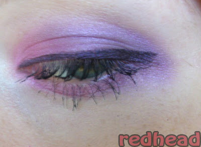 Na całą powiekę nałożyłam nr 2. Zewnętrzną część górnej oraz dolnej powieki roztarłam nr 5. Wewnętrzny kącik i łuk brwiowy rozświetliłam nr 1. Nr 4 podkreśliłam wewnętrzny kącik dolnej i górnej powieki. Nr 3 posłużył mi do przygaszenia całego makijażu - pędzlem delikatnie przykładałam go do górnej powieki. Kreska została najpierw zrobiona nr 5, ale okazał się on być zbyt mało napigmentowany do tego zadania, poprawiłam ją zatem kremowym eyelinerem z e.l.f.a.